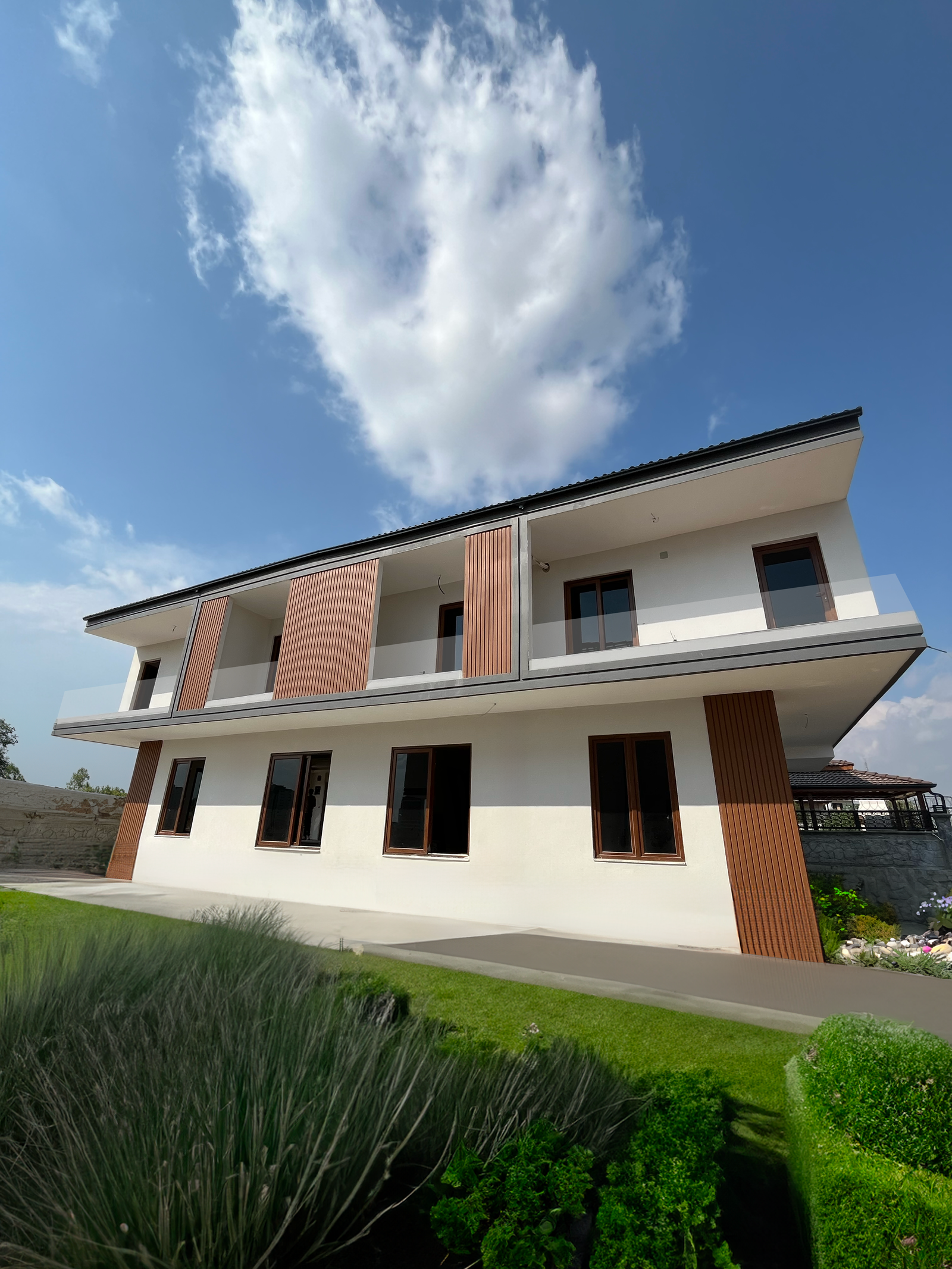 Bu projede modern mimariyi doğanın güzelliğiyle birleştiren, lüks ve konforun ön planda olduğu bir yaşam deneyimi sunuyoruz. Projemizde, iç mekan ve peyzaj tasarımını özenle birleştirerek, sakinlerimize hem estetik açıdan keyifli hem de fonksiyonel bir yaşam alanı sunuyoruz.